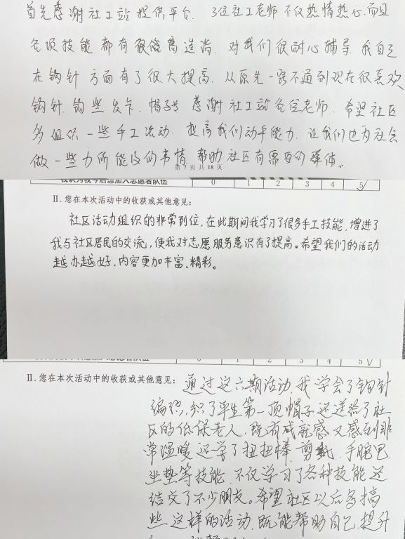 此次“邻里手工坊”长者手工小组活动,产出帽子、围巾、手腕包、柿柿如意花束、剪纸和福字对联等各类手工作品,截至目前,社工站将其送给辖区困境家庭和高龄独居老年人共惠及12人,同时借助“幸福邻里”公益市集进行爱心义卖筹集社区基金85元,挖掘出2名社区骨干、转化5名志愿者;“邻里手工坊”长者手工小组,以手工为切入点,为辖区低龄老年人搭建了一个集社交、学习、志愿服务与一体的平台,向老年人传递积极老龄观同时促进了低龄老年人的社区参与。下一步,社工站将继续开展“耆乐计划”为老服务项目,整合多方资源,对老年人分层分类开展服务,实现老年群体乐养、乐学、乐活,构建老年友好型社区。