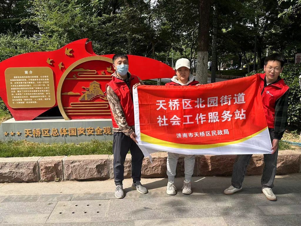 五一佳节期间,北园街道社工站策划并实施了“社工助力文旅,我为济南代言”的志愿活动,服务地点选在了北园街道明湖北路滨湖广场区域。因为这里南邻风光秀丽的大明湖景区,北靠繁忙的济南长途货运东站,更是大明湖火车站的所在地。节日期间,这里无疑将成为人流汇聚的热点。因此,将志愿者派驻于此,为游客们提供及时、贴心的帮助,展现济南的魅力和热情,最能体现社工的服务价值。