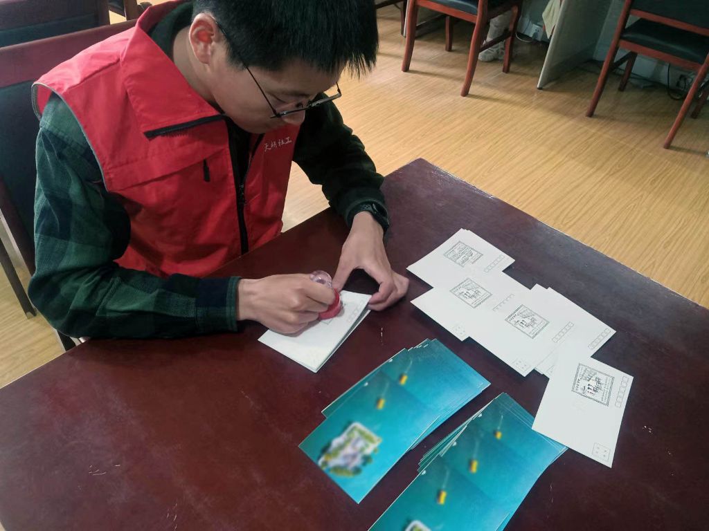 在选择明信片的纪念邮戳时,年轻的社工们动起了“小心思”。 根据以往的经验,外地游客对于济南传统三大名胜有一定了解,所以他们首选目的地基本都是这里,这样一方面热门景区是“人山人海涌如潮,摩肩接踵路难遥”;新景点、冷门景点宣传不够反而是“明珠藏深海,光华待人识”。那么如何让更多的游客快速获知济南其他优质的旅游景区,从而进行合理分流呢,节前北园街道社工们走访了济南邮局在市区里的各个打卡盖章点,精选了5枚代表天桥区旅游资源的纪念邮戳:济南新八景之清河烟岚(北园街道小清河风景带含五柳岛)、济南老八景之鹊华烟雨、百里黄河、胶济铁路博物馆、济南华夏书信博物馆。然后加盖在明信片上,当有游客对明信片和邮戳感兴趣时,志愿者的角色就发生转换,主动引导游客的兴趣点、尊重他们的选择,完成旅游资源的推广和引流。前一秒还是提供服务的志愿者、后一秒就化身为济南文旅推荐官,这种能为实现特定的社会目标或计划而工作的特质就是社工角色中实现者的体现。