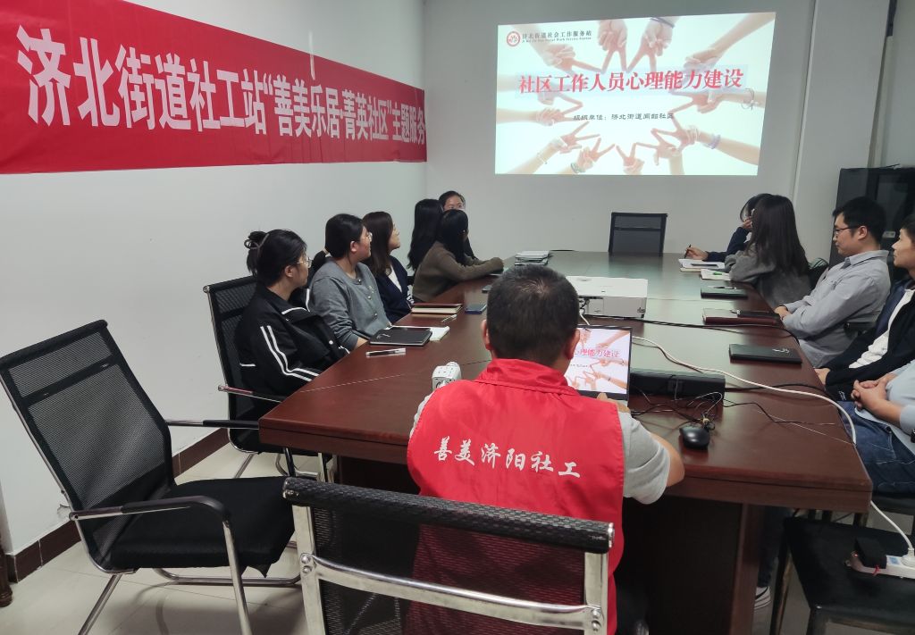 为了促使新入职社区工作者尽快的适应工作环境,提升社区工作人员心理健康水平和自我调适能力,更好的服务社区居民,济阳区济北街道社工站依托“善美乐居·菁英社区”品牌主题,于10月17日在闻韶社区开展了社区工作人员心理能力建设体验课堂,闻韶社区12名社工人员参加了活动。