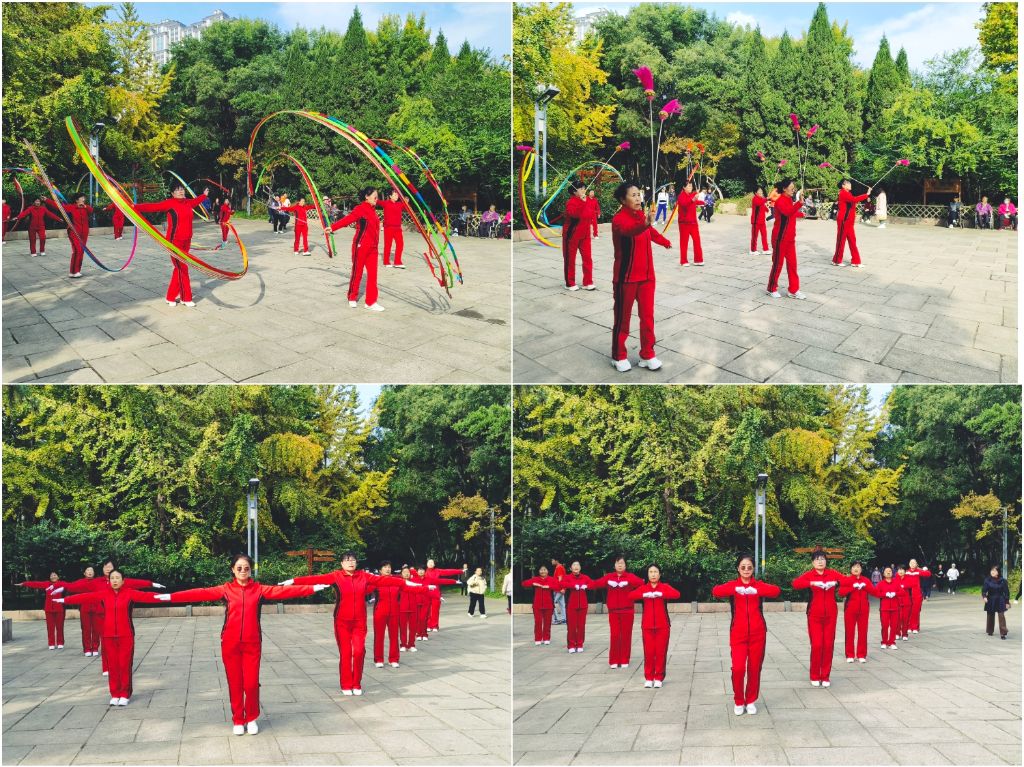 接着,陈桂荣带领艺术团成员发挥团队特长,在公园广场表演了彩带舞、健身球舞、健身操等运动保健项目,柔美的彩带在她们手中如彩虹般绚烂起舞,灵动的健身球在她们的牵引中划出优美的弧线,节奏轻快的健身操唤醒着身体的轻盈与律动。市民朋友纷纷驻足观看,有的称赞拍照,有的询问如何参与,有的在旁边不由自主地跟随舞动。艺术团以实际行动影响着市民朋友关注身体健康,积极参与运动保健。