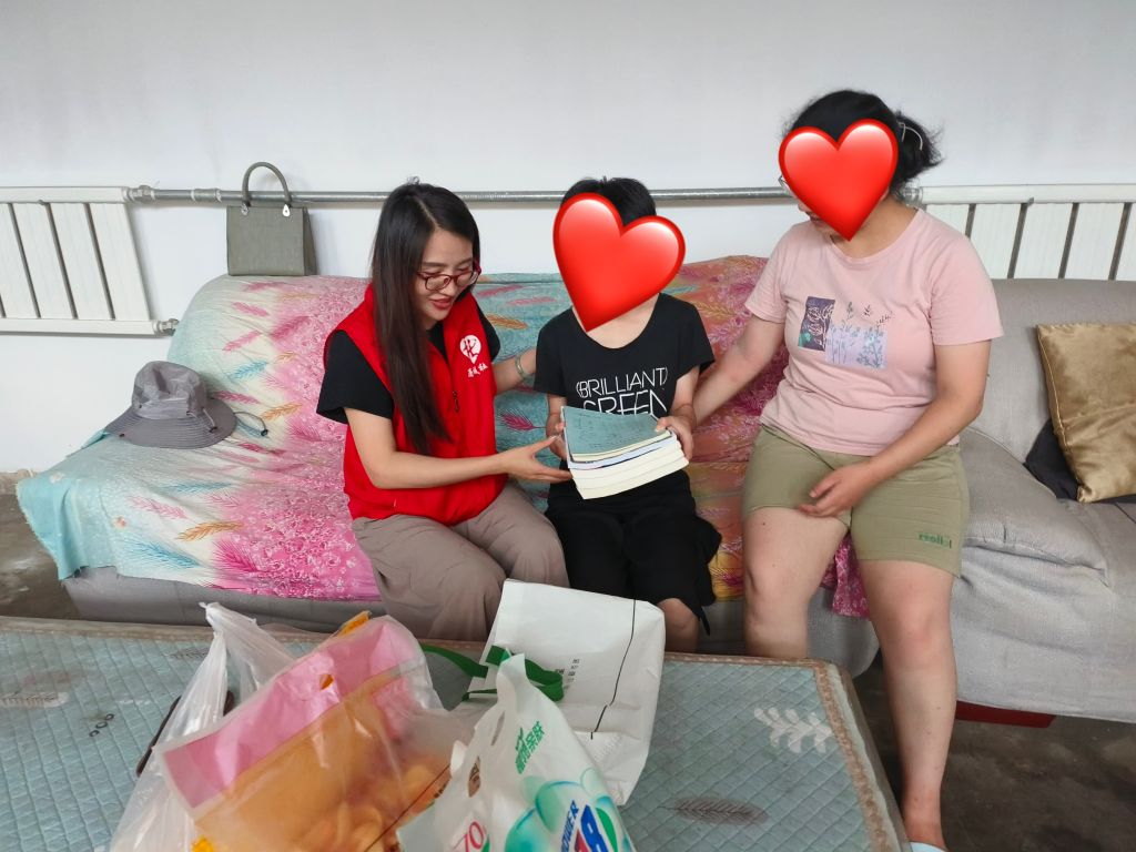 在经过前期个案服务的介入中,驻站社工积极对接残联工作人员,第一时间协助小李(化名)的父亲办理了残疾证,同时协助其妹妹办理残疾人子女教育资助,为其家庭减轻了部分经济压力。服务过程中社工了解到,其妹妹目前正上高中,社工站积极链接辖区资源,为其捐赠了高中数学、语文等练习册及教材辅导书籍,同时,带去爱心物资。在与服务对象面对面交谈中,社工及时记录其目前面临的困境,运用同理心、倾听等专业技巧,引导小李畅谈接下来的生活计划,并共同制定相关帮扶方案,小李介绍着整个家庭的变化并一再表达着感激之情。