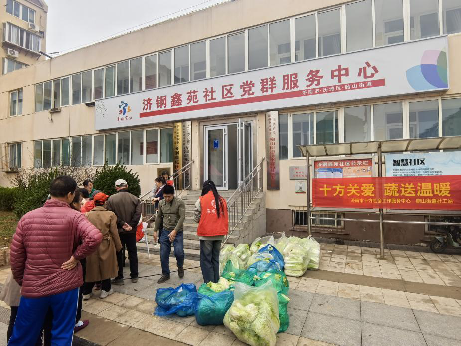 为回应济钢鑫苑社区老年人的服务需求,关爱老人,提升辖区老年人的幸福感,共建和谐幸福的美好社区。11月15日,鲍山街道社工站与济南十方社会工作服务中心携手爱心企业三个篮子农业供应链有限公司,共同策划并实施了“十方关爱,蔬送温暖”公益活动。此次活动旨在通过为辖区的长者们免费送上新鲜的蔬菜,传递关爱与温暖,同时也彰显了社会各界对老年人的深切关怀与尊重。