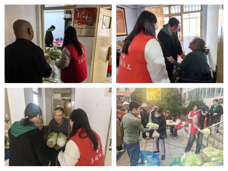 活动现场,在社工及社区工作人员的引导下,居民们整齐地排好队,有序领取白菜。领到白菜的居民个个满心欢喜,脸上洋溢着幸福的笑容,纷纷表示这样的活动既实惠又贴心,让他们感受到了社区的温暖。同时社工还不忘提醒前来领取蔬菜的居民们合理膳食、适当运动、科学规律作息、保障身体健康。除了为老年人提供蔬菜,社工站还特别关注行动不便、生活困难的居民。走访过程中,社工与社区工作人员亲手把白菜递到困难群众手中。每到一处,都会耐心询问居民的身体状况和日常起居等情况,叮嘱其有关因天气防寒家中用电、用气等安全事项。