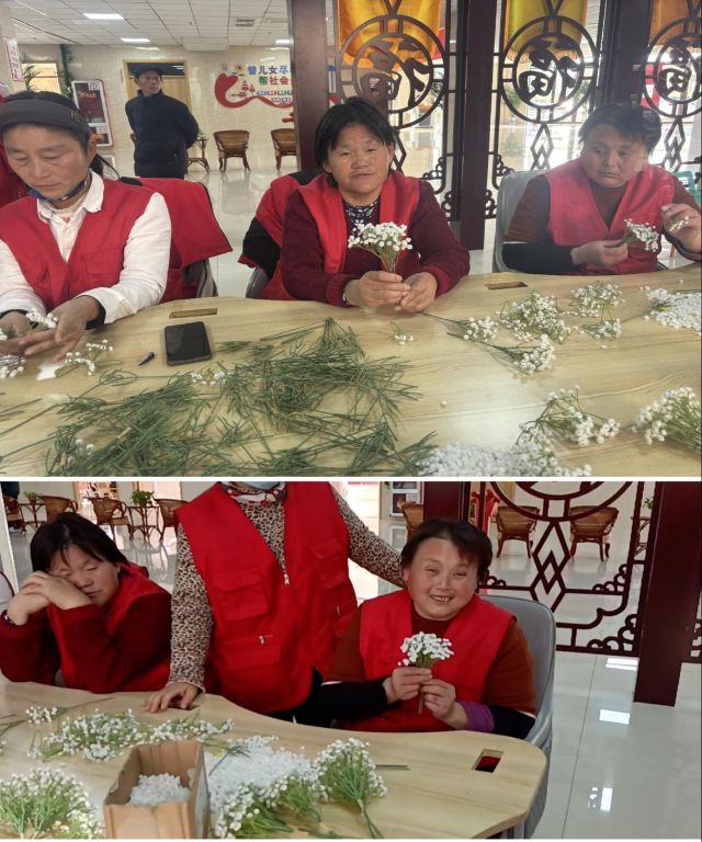 经过一段时间的努力,漂亮的仿生花绽放了。一束束白色的小花被精心地用丝带绑扎起来,形成一片独特的花海,迸发出无限的生机与活力。仿生花被赋予了新的意义,它是残疾朋友们用耐心、毅力和爱心浇灌出来的成果,是他们对生活热爱的表达。