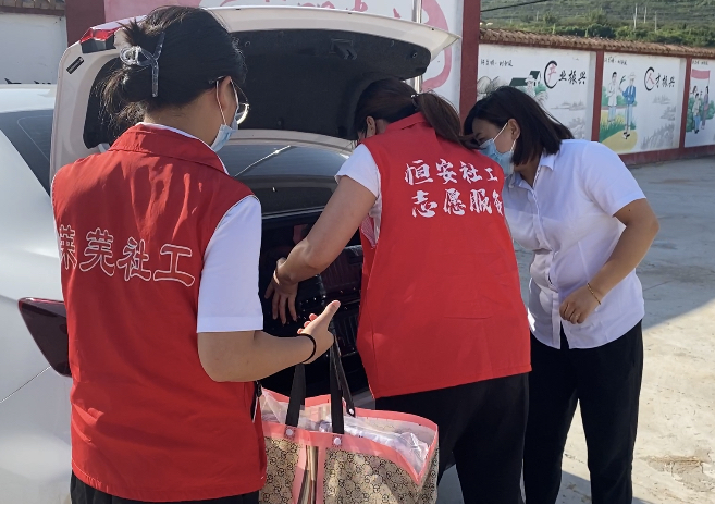 在入户过程中,高庄街道社工和恒安中心工作人员们来到困境儿童家中,以儿童学习情况、家庭现状、生活需求等内容为切入点,与困境儿童及监护人亲切交谈,并为学生送上行李箱、书包、台灯、保温杯等慰问品,叮嘱监护人多从思想上关心、情感上关怀、生活上关爱,帮助孩子健康生长。