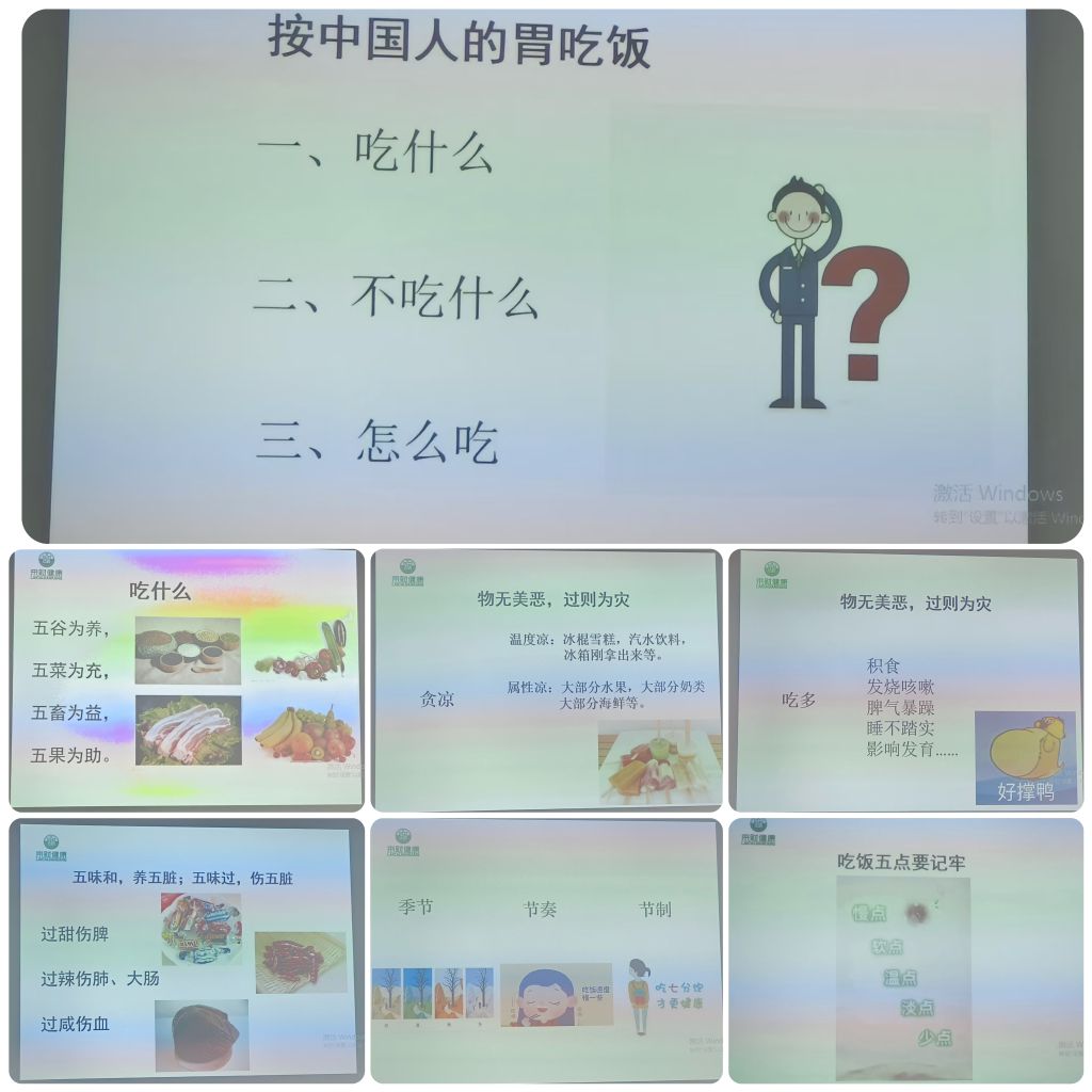 活动中,林老师深入讲解了饮食与健康的关系。他强调应按中国人的饮食习惯进食,明确吃什么、不吃什么以及怎么吃。饮食应遵循“五谷为养,五菜为充,五畜为益,五果为助”的原则。同时,要注意避免食用过凉的食物,如冰棍雪糕、汽水饮料等,以及属性凉的食物,如大部分水果、奶类和海鲜等,以防贪凉损害身体。