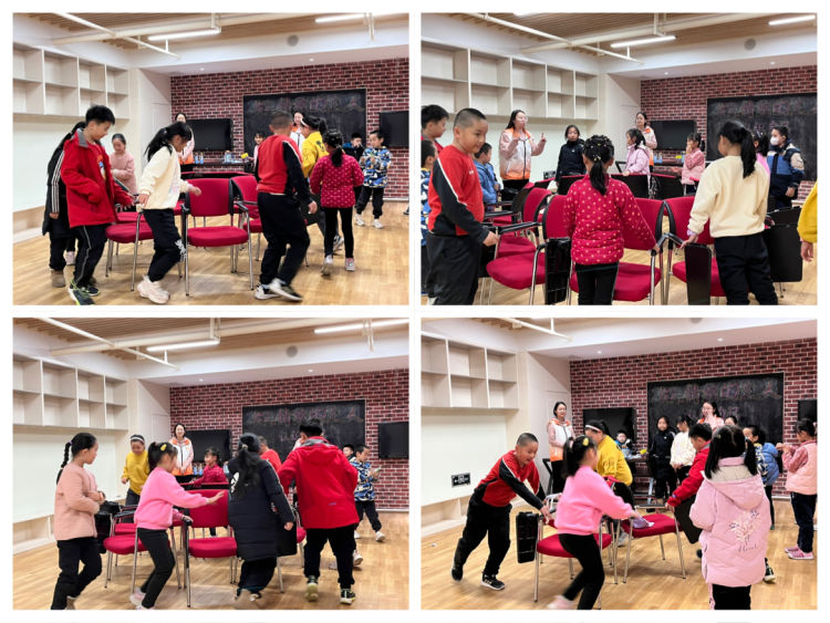 社工带领组员开展抢凳子游戏。鼓励组员总结游戏过程,表达个人经验和感受。在此过程中,组员通过游戏的方式增进了解,营造出轻松愉快的小组氛围。