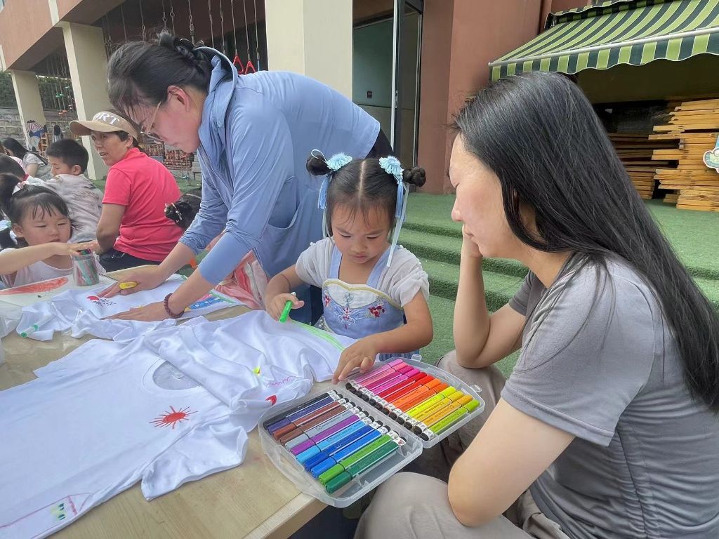 为让每个孩子在多彩的童年生活中感受成长的快乐,发挥自己的创意和才能,进一步增强孩子和家长之间的互动与合作,体验自由表达和亲子彩绘创作的乐趣。8月1日,王舍人街道社工站联合历城区学人幼儿园举行“缤纷盛夏 亲子色彩”T恤彩绘亲子活动。