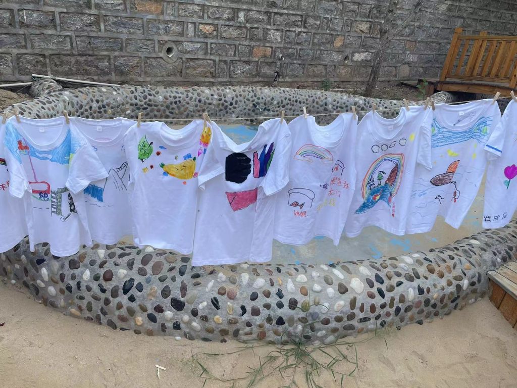 活动现场,社工为小朋友们分发T恤、颜料、画笔等材料,为大家讲解注意事项及画法,以T恤为画板,充分发挥想象力,在T恤上尽情涂鸦。每一个孩子都细心的制作着专属于自己的“艺术品”,经过一个多小时的努力,作品陆续出炉,孩子和家长共同创作出彩虹、花朵、城堡等图案,一幅幅形象生动、充满童趣的作品让人目不暇接,每幅作品都展示出孩子们充满童真和阳光的内心世界。整个活动现场色彩斑斓、精彩纷呈,让亲子共同享受充满童趣的体验之旅,家长们都表示,这样的活动很有意义,既能发挥孩子的想象,又能给我们与孩子之间留下美好的纪念,孩子拿到T恤很有成就感。