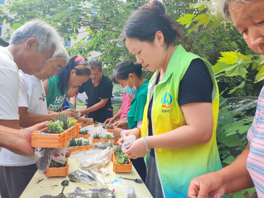 为丰富老年群体的精神文化生活,促进他们身心健康,形成互助养老氛围,实现“老有所乐”。8月7日,济南新旧动能转换起步区孙耿街道社会工作服务站针对老年人群设计开展了“小镇园艺坊·我心里的一片绿洲”为主题的小组活动。各种色彩让人眼花缭乱,而它们的形态也是各具特色,有的像小球串,有的像盛开的莲花,有的像长条形状的手指,有的憨态可掬像可爱的小动物……这些多肉植物不光长得俏,名字取得也十分巧妙。
