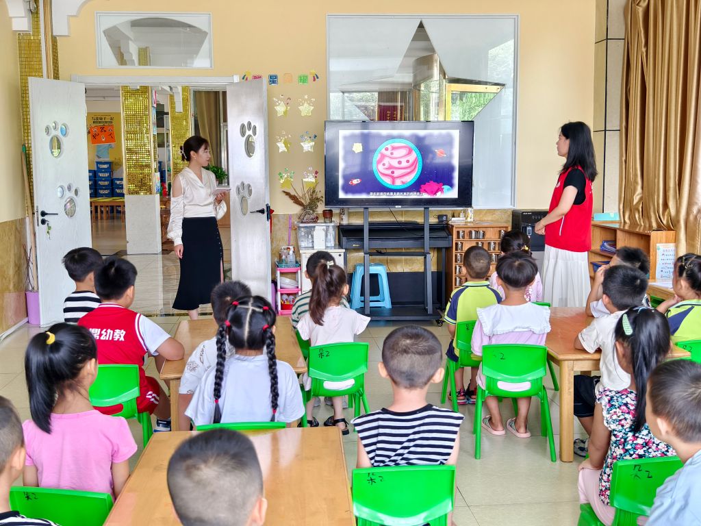 2024年7月18日,汶源街道社工站到红燕子幼儿园开展“用爱培养 用心预防”儿童传染病教育小组活动。