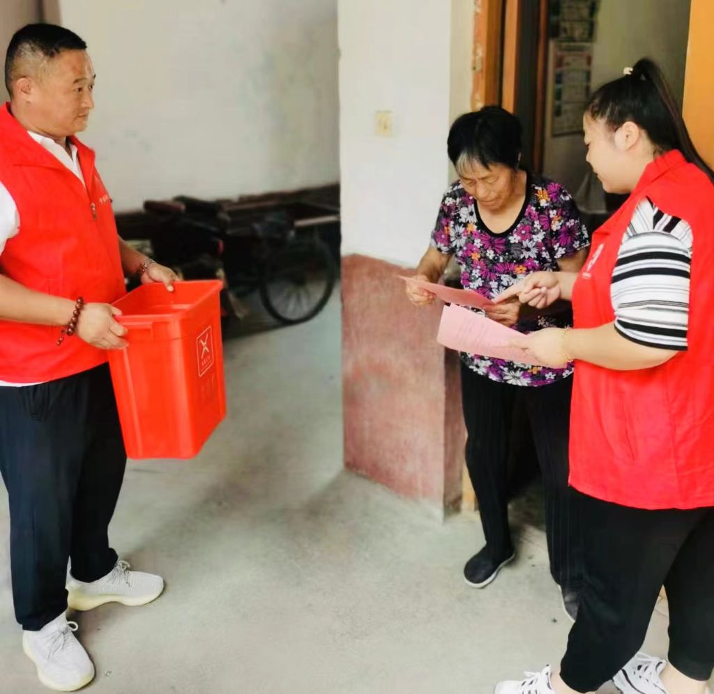 随后,社工和工作人员开展垃圾分类入户宣传,挨家挨户上门派发垃圾分类宣传手册,向居民重点讲解有害垃圾分类投放注意事项,宣讲有害垃圾科学回收的重要性,引导居民树立正确、科学投放有害垃圾的意识,同时,号召居民将家里的过期药品、废旧灯管等有害垃圾进行适当处理之后投放到有害垃圾收集箱内。