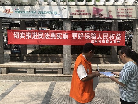 为进一步让社区居民了解《中华人民共和国民法典》,提升对《民法典》的认识度和知晓率,2020年7月29日上午,四里村街道“心家园”项目在英雄山社区开展一场“切实推进民法典实施,更好保障人民权益”之民法典宣传进社区活动。