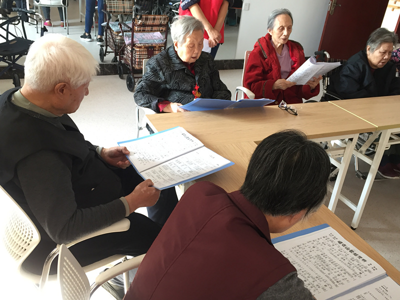 上午九点,社工将小组成员陆陆续续带到活动室。首先一曲《幸福在哪里》开场,将合唱的气氛带起,对于这首老歌,老人们很熟悉也喜欢唱。然后便开始复习前两次活动学习的歌曲《祝福祖国》,在贾奶奶的钢琴伴奏下,老人们伴着琴声认真合唱,透过窗户阳光洒在老人的身上,感觉特别神圣,让人心头一震。之后为满足老人的要求,便开始学习《唱支山歌给党听》,在一遍遍的琴声中,老人们虽然不太熟练,但也渐渐掌握,相信老人们在下次活动中就能熟练掌握了。