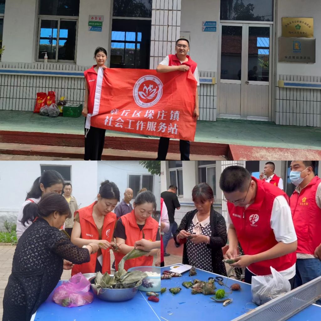端午节将至,社区里弥漫着节日的氛围。为了让社区的老人们能够更好地感受端午节的温暖和快乐。6月7日上午,垛庄镇社工及志愿者在垛庄镇南垛庄日间照料中心开展“包粽子献爱心”服务活动。