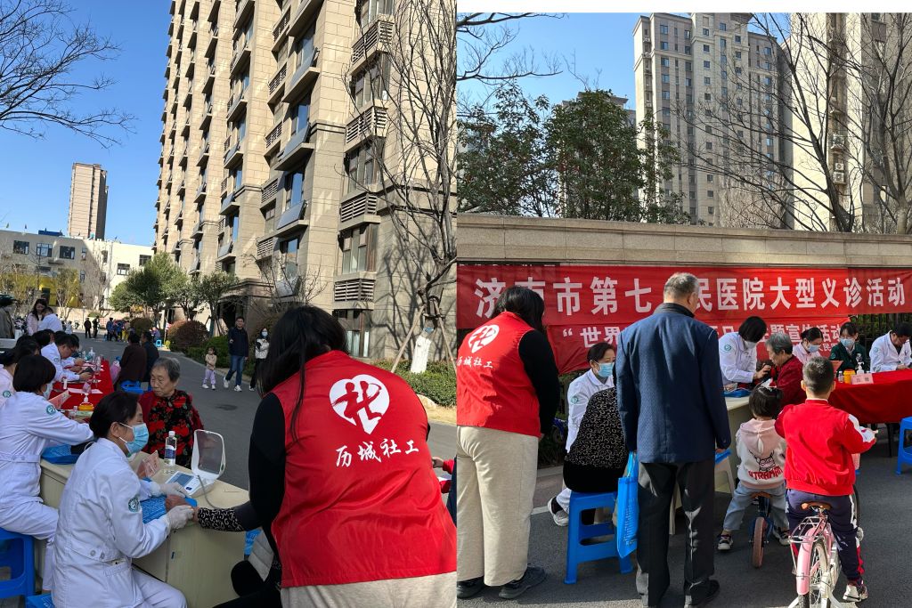 为践行基层社会治理创新理念,在街道全范围内普及健康知识,3月26日上午,唐冶街道社工站助力中新国际城西社区开展"关爱健康·温暖同行"健康服务专项行动。此项行动,社工站通过精准对接济南市第七人民医院多学科医疗资源,组建涵盖心血管、内分泌、、妇产等领域的专家团队,为居民提供免费健康咨询与检查服务。