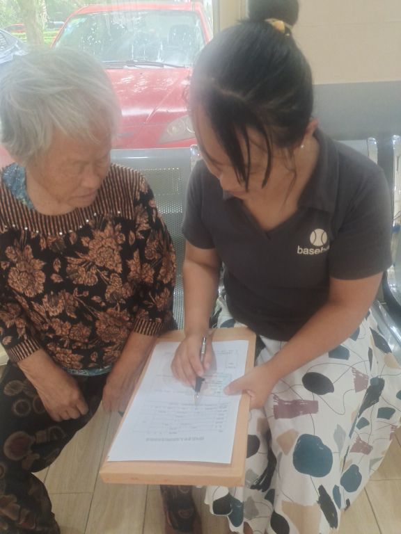 在独居老人杨奶奶家,社工了解到杨奶奶今年已经80周岁了,还没有申请高龄补贴,由于年龄太大、腿脚不便,杨奶奶不能亲自去大厅申请,小孟主动协助杨奶奶填写申请表格、准备资料,帮助老人进行申领申办,解决杨奶奶的“后顾之忧”。