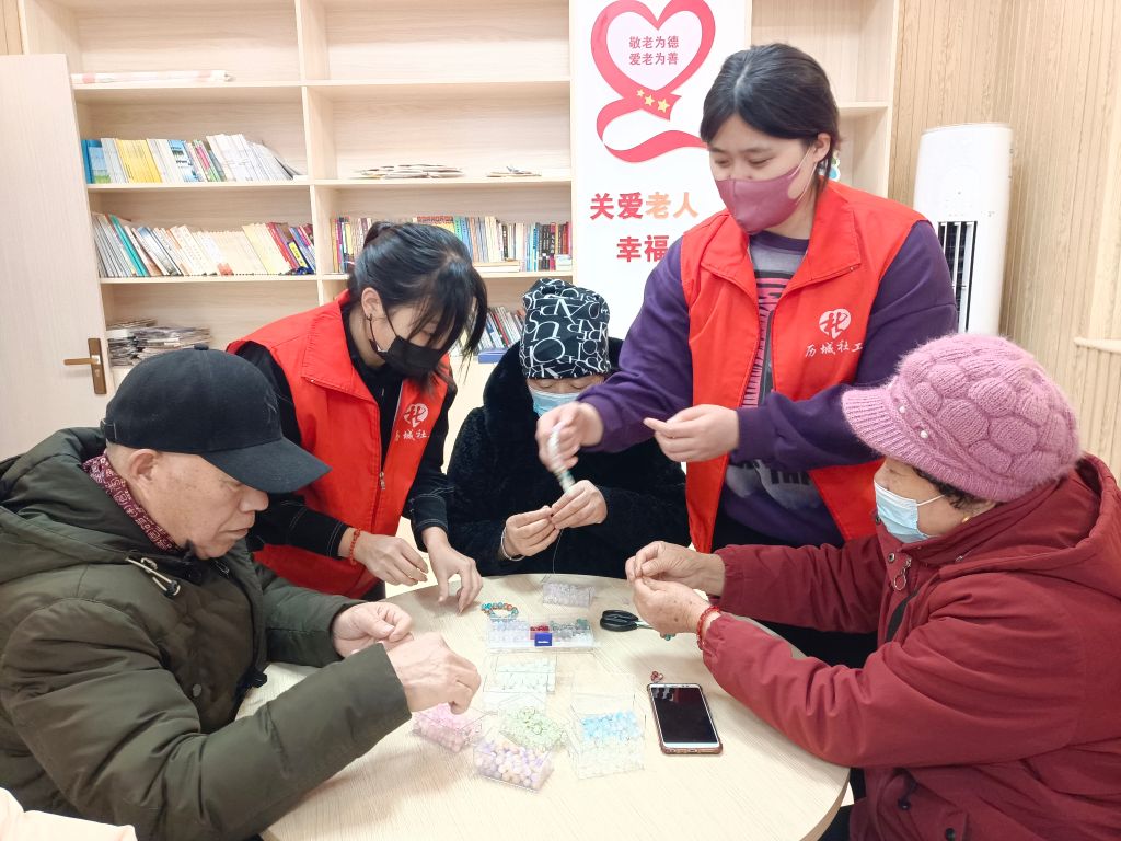 社工开展“老有所乐,动手有益”主题串手链活动