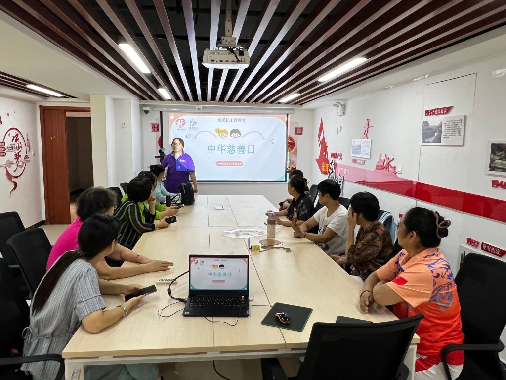 2024年9月5日是第九个“中华慈善日”,济南市槐荫区兴福街道社会工作服务站(下文简称“社工站”)结合本年度中华慈善日“崇德向善,依法兴善”的主题与社工站实际运营情况,开展了全民社工微课堂活动,促进辖区内“全民社工”志愿者志愿精神的形成和公益知识的储备,延续“手工+志愿”的服务成效,倡导全民关注公共事务,参与公益慈善活动。
