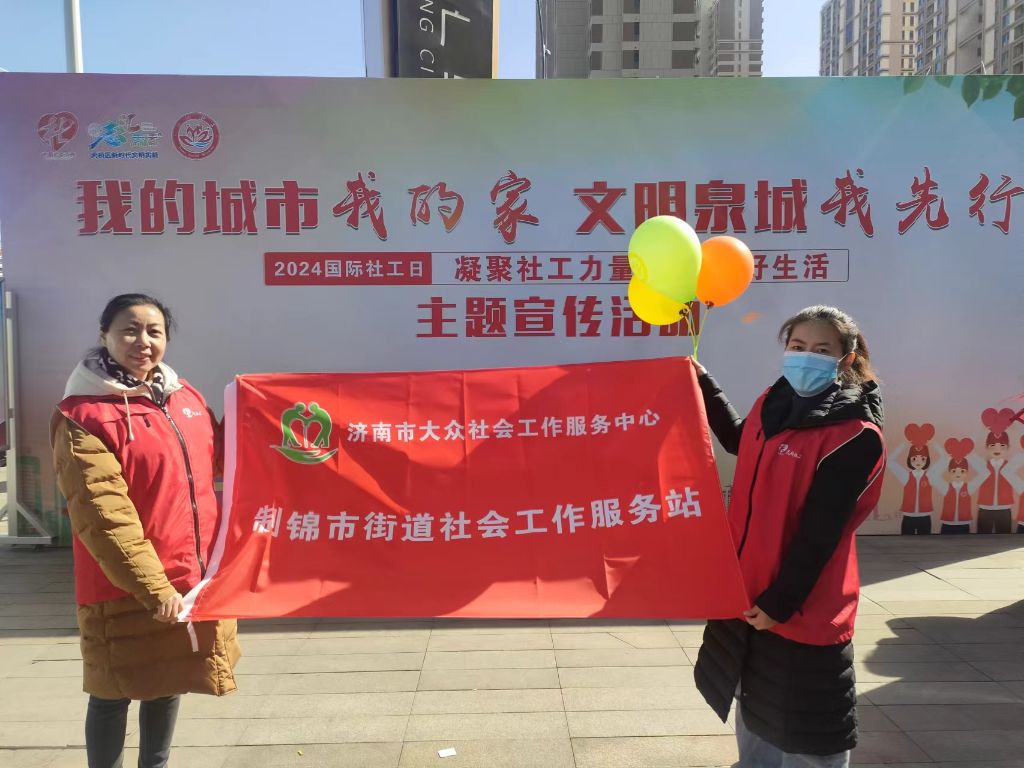 在第十八个国际社工日到来之际,为了提高社区居民对社工的认知,加强社工与居民之间的联系。制锦市街道社工站积极响应天桥区民政局和社工总站的号召,于3月19日,在名泉广场开展“汇聚社工力量,服务美好生活”为主题的国际社工日系列宣传活动。