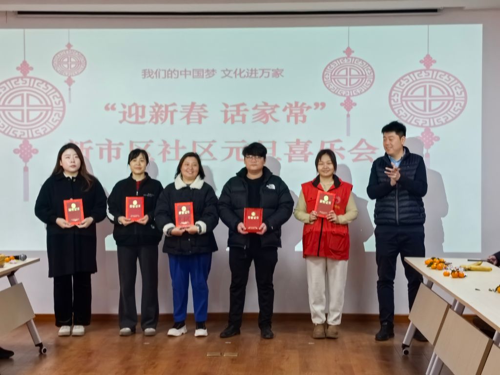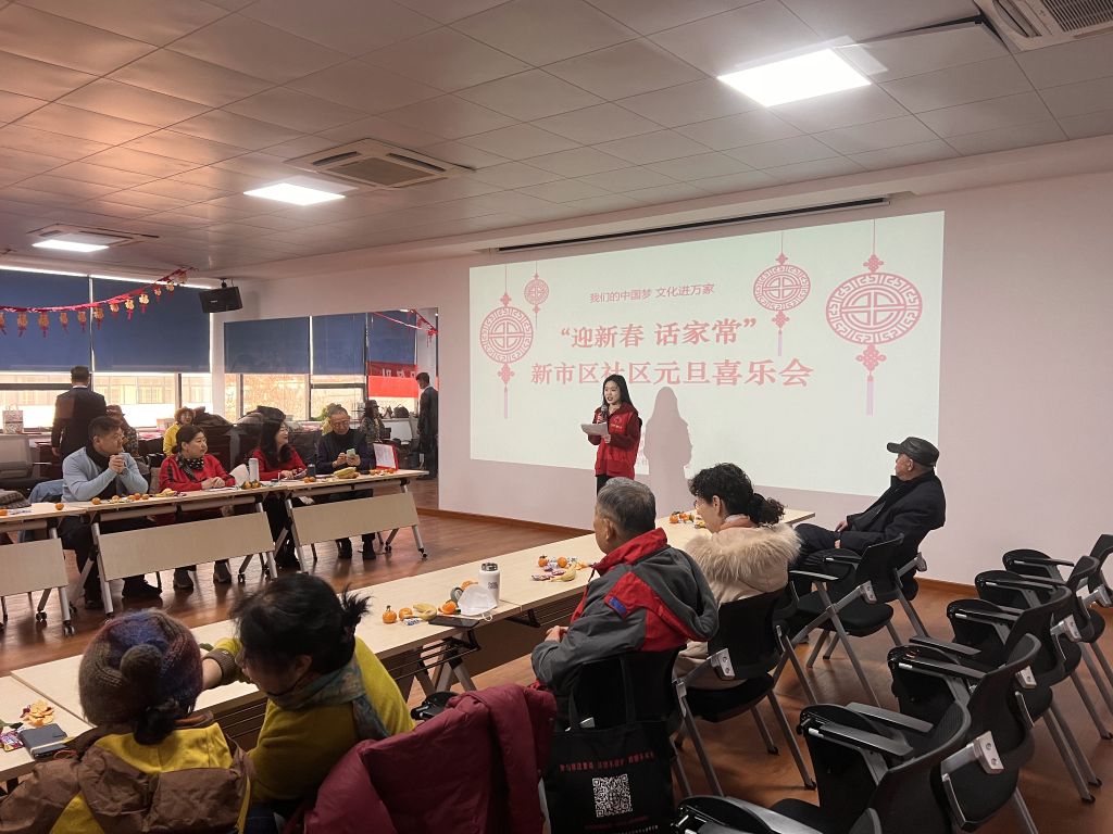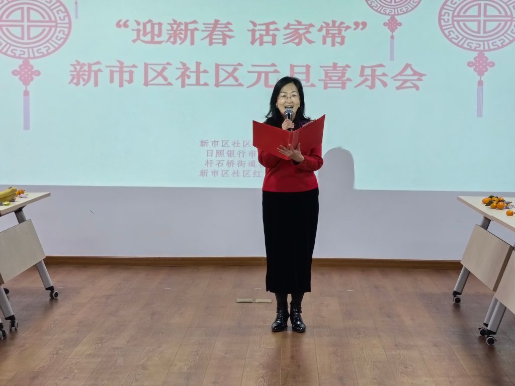活动伊始,新市区社区书记宋嘉纬代表全体工作人员,为大家送上了美好的节日祝福,对过去一年的社区工作进行了总结,充分肯定了辖区共建单位和居民朋友对社区工作的支持和付出,期待大家在新的一年里,携手并进,凝聚力量,团结一心,继续打造更加平安、幸福、和谐的社区环境。