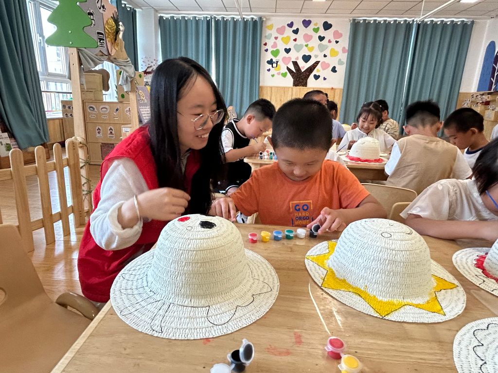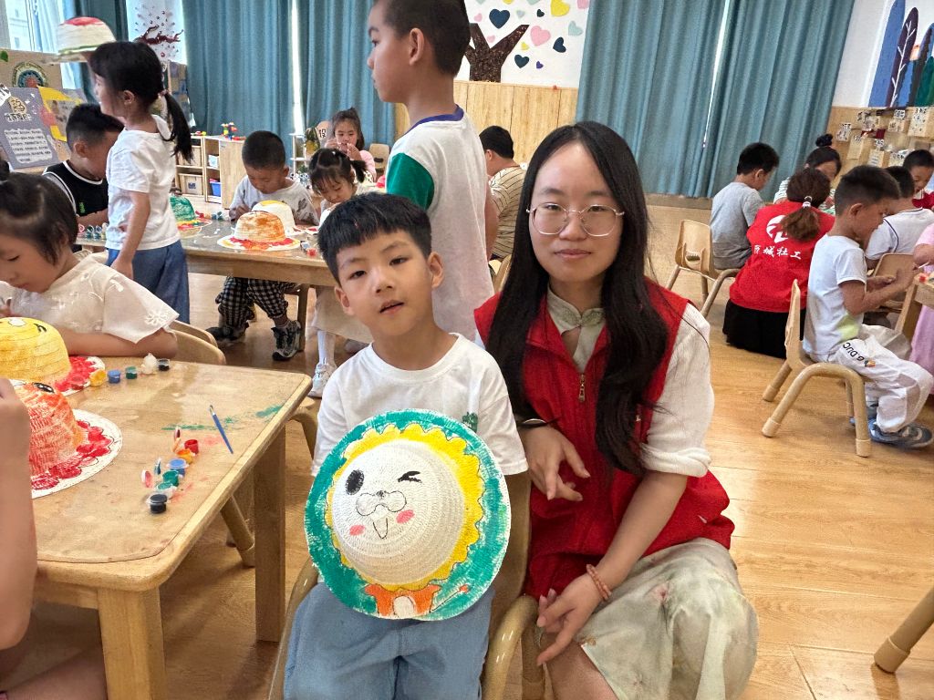 在创作过程中,孩子们相互交流、互相帮助,气氛十分融洽。经过近一个小时的努力,一顶顶独一无二、充满创意的草帽在孩子们手中诞生。看着自己亲手制作的作品,孩子们的脸上洋溢着自豪和满足的笑容。