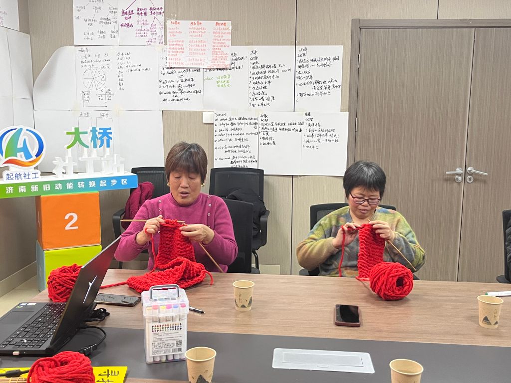 爱心藏在针线里,一针一线皆是情。本次小组所招募组员皆为鹊华九里居社区内回迁居民,小组以“寻找年味,传承文化”为中心主题,满足辖区居民多元化精神文化需求的同时,唤醒辖区居民家乡归属意识与社区责任意识。在寻找年味中探寻中华传统“年”文化所蕴含的人文关怀与邻里温情,以“中国红”爱心围巾为抓手挖掘辖区居民志愿服务能量,传递向上向善的中国年味内涵。下一步,大桥街道社会工作服务站将会立足辖区居民服务需求,开展更加多元、多彩、到位的服务。
