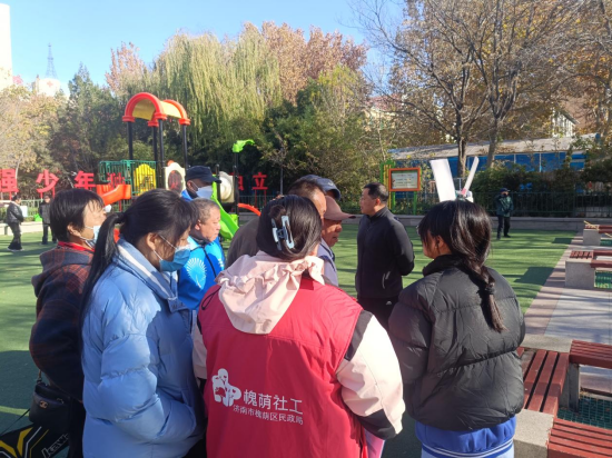 伴着冬日暖阳徐徐升起,槐荫区青年公园街道社会工作服务站(以下简称“青年公园街道社工站”)的社工们带着自制的手工海报来到槐荫广场,进行服务宣传及服务对象招募,将社工服务带到居民身边。
