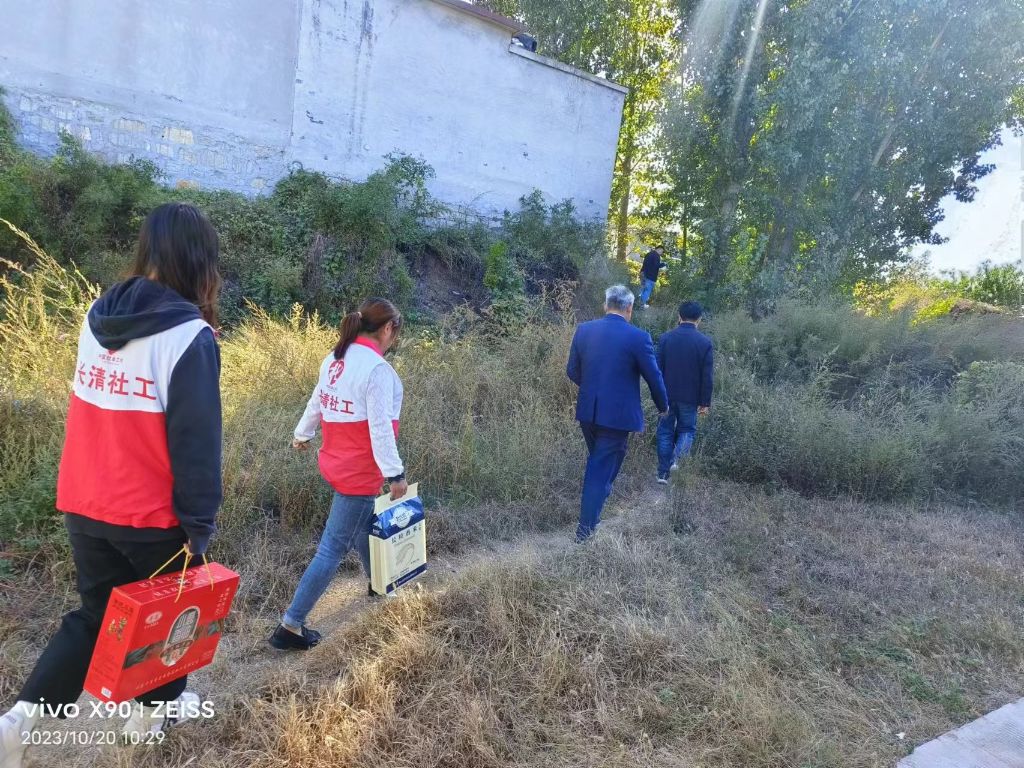 社工站前期开展需求调研时,收集到村庄内生活困难的老人家庭信息。此次便通过入户走访的方式将基本的生活物资送到他们的手中。走访慰问过程中,社工对他们近期的身体状况和生活需求表达了关心,并告知他们平时遇到生活上的困难就联系社工站,他们拉着社工的手迟迟不愿松开,嘴里一直念叨着“谢谢你们”。