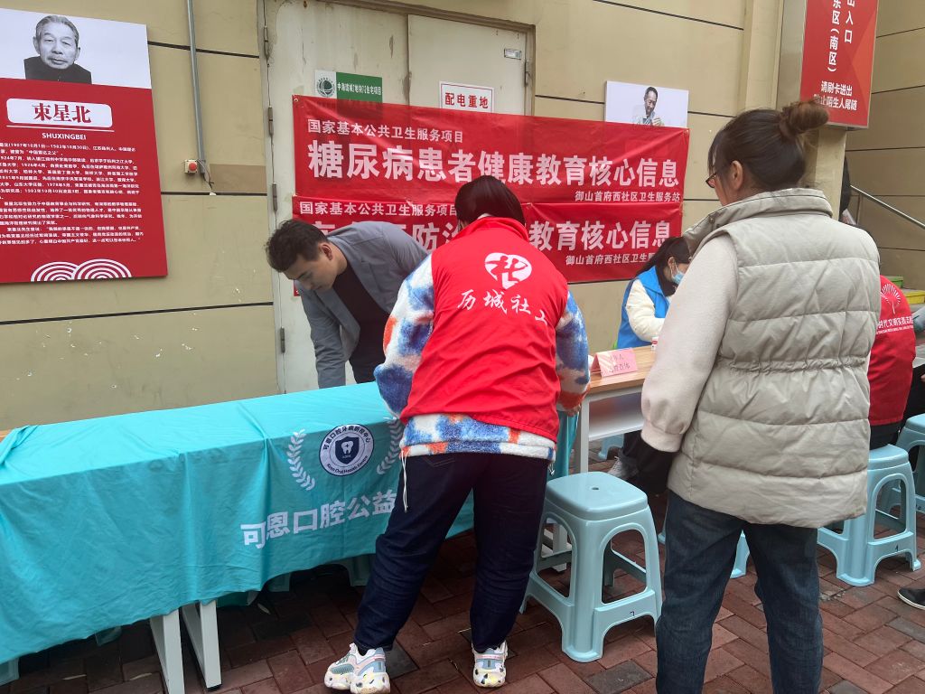 为切实回应社区一般群体的需求,引导辖区居民了解自身健康状况,进一步提高辖区居民健康水平和生活质量,华山街道社工站充分挥平台作用,积极对接御山首府东社区,链接辖区资源御山首府西社区卫生服务站和可恩可腔等爱心企业,于11月9日下午在御山首府东社区北区南门下沉广场开展“资源联动 共筑健康屏障”爱心义诊活动。