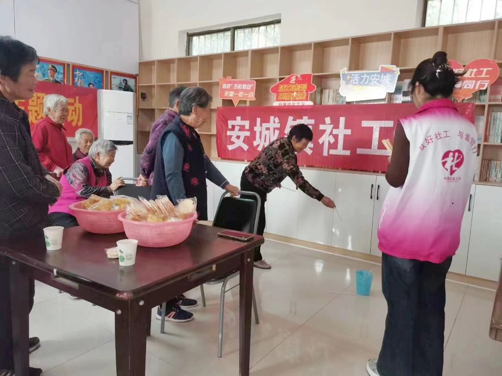 为倡导“生命在于运动”理念,丰富老年人的休闲时间,鼓励老人动起来,强身健体,营造起运动健身的氛围,榆山街道社工站、安城镇社工站、玫瑰镇社工站、东阿镇社工站和洪范池镇社工站相继在辖区开展趣味运动会活动,活动形式多样有桌面滚筒大战,筷子运乒乓球、你划我猜、套圈、简易保龄球等适合老年人参与的小游戏。在社工的指引下,老人们有序体验不同的游戏,感受节日的热闹氛围,畅享幸福。在这个属于长者的节日里,通过趣味运动会活动,积极营造良好的节日氛围,切实增强老年人的获得感、幸福感、安全感。