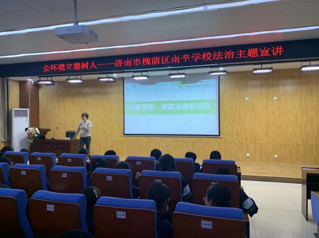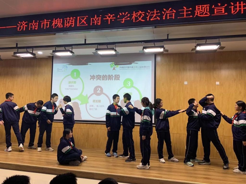 为了有效预防校园欺凌事件,增强儿童自我保护意识南辛庄街道社工站邀请济南时代春风青少年公益发展中心执行主任赵菁为南辛庄学校初中部120余名学生开展泉城·青益济南市青少年健康成长活动进校园主题教育——化解冲突,预防欺凌。