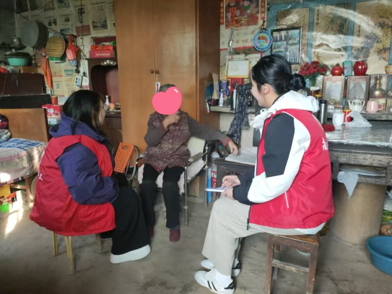 案主英奶奶今年91岁高龄,有一儿一女,老伴早年去世,现在独自居住。儿女已将近70岁,各自家庭忙碌只偶尔来探望,英奶奶居住环境较差(土坯屋),位置较高,出门需上下爬坡,对于已91岁高龄的英奶奶,出门很不便利,下雨下雪等恶劣天气便不敢出门。