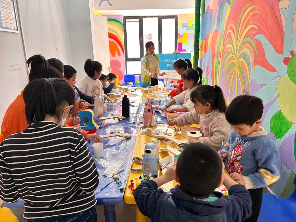 在社工的引导下,孩子们大显神通,不一会儿就将琴头、弦钮、琴码、琴枕、指板、琴弦等部件安装到了尤克里里面板上。紧接着就到了快乐涂鸦时刻,孩子们充分发挥自己的创意,用五彩斑斓的颜料在尤克里里表面绘制出各种图案。有的孩子在琴身上画出了可爱的卡通人物,有的则选择绘制美丽的自然景色,还有的发挥抽象思维,创作出了独具特色的图案。在社工的支持和引导下,每一个孩子都用心投入到尤克里里的制作过程中,用双手将自己的想象力和独特个性融入尤克里里中,现场气氛热烈而愉快。