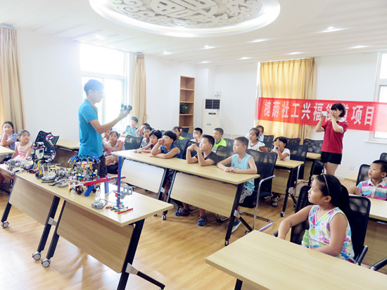 8月9日上午,槐荫社工兴福项目组联合兴福街道办与市科协合作开展了“百千万”社区科普公益行动,让机器人与暑期夏令营的小朋友们亲密接触,让孩子们感受科技的奇妙。