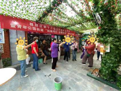 随后,一场社区运动会热烈展开。社工在和合小院及艺术走廊区域设计了大丰收、百发百中、一飞冲天三个游戏环节,通过趣味游戏的体验,参与者沉浸其中,感受通过运动为身心带来的愉悦感,这一活动不仅能让辖区残疾人感受运动带来的快乐,更是为残障群体间的交流互动创造机会,帮助他们搭建朋辈群体支持网络,帮助他们感受社区活动带来的温馨与共的环境氛围,提升残疾人社区参与度,促进社区融合。在活动过程中,社工协助青合·爱心房奶奶志愿服务队的志愿者们,通过手语来与聋哑残疾人进行交流互动,“举手投足”的比比划划,让现场充满欢声笑语,逐渐拉近了大家的距离,一个手语的“谢谢”,一个指尖传递的感激,无不体现着人与人之间相互关照的温暖。