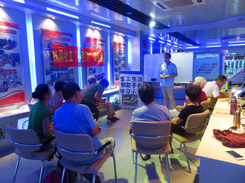 经历了三伏天的考验,槐荫社工“心引力”项目组第七期“掌上生活”智能手机小组于8月12日在南辛庄街道办事处家园中心2楼迎来了结业典礼,活动由不惧炎热、坚持不懈的8位小组成员参加。
