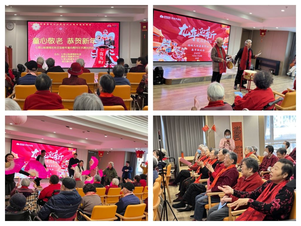 莫道桑榆晚,为霞尚满天。对老人的敬与爱,应不止于节日。我们应时时以弘扬中华民族传统美德,倡导尊老敬老风尚为荣,真正将关心老人,关爱长辈融入生活。新春即将到来之际,七里山街道社工站链接经五路小学青少年志愿者、海珀社区,举办了“童心敬老,恭贺新年”送福送温暖慰问演出活动,让老人感受到来自大家的关怀和温暖,大家在欢声笑语中感受中华传统美德的魅力。