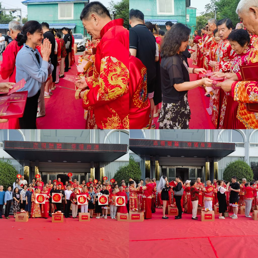 活动现场,社工们为17对老人准备了鲜花等礼物,老人们集体穿着喜服在主持人带领下重温结婚誓词,区婚姻登记处宋晓妍主任和七里山街道副处级领导林彬为老人们颁发结婚证、赠送“幸福礼包”;随后邀请金婚老年夫妻讲述幸福对白,为当天办理结婚登记的新人颁证、送上“幸福礼包”与祝福,大家共作执手礼,集体拍照留念。