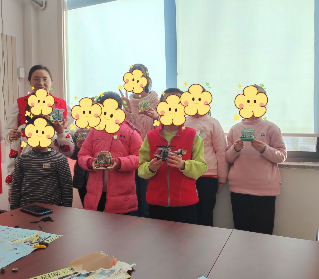 随后,来到了本次活动的重头戏——趣味乐高积木拼装,孩子们收到乐高积木后,在社工的指导和帮助下跟着步骤图纸,专注地将一块块积木拼接在一起。小朋友们一会儿拆开、一会儿组装,有的淡定、有的手忙脚乱,享受着拼装积木的乐趣,陶醉其中。不一会儿,都完成了乐高的拼装,脸上洋溢着开心的笑容。孩子们看着自己完成的作品很是兴奋也很有成就感。