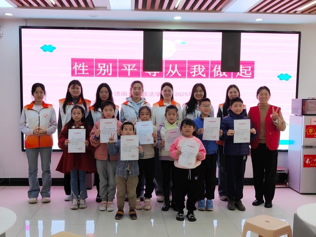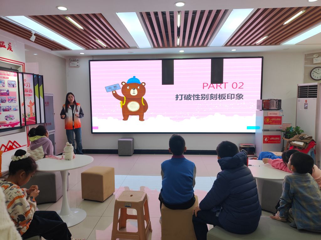 为了帮助儿童初步建立性别平等认知,有效消除性别刻板印象,3月15日,舜玉路街道社工站链接济南大学政法学院大学生志愿者,联合舜函社区开展儿童性别平等教育进社区活动。活动以互动游戏、科普教育、情景讨论等形式,引导儿童尊重性别差异,培育包容多元的价值观,构建和谐友好的人际关系。