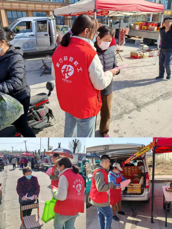 清明节前夕,为倡导文明祭祀、弘扬时代新风,明水街道社工站组织志愿者走进热闹的明水大集,开展“移风易俗·绿色清明”主题宣传活动。通过发放倡议书、现场讲解、互动问答等形式,引导群众摒弃陈规陋习,以更环保、更安全的方式寄托哀思,让传统节日焕发文明新气象。