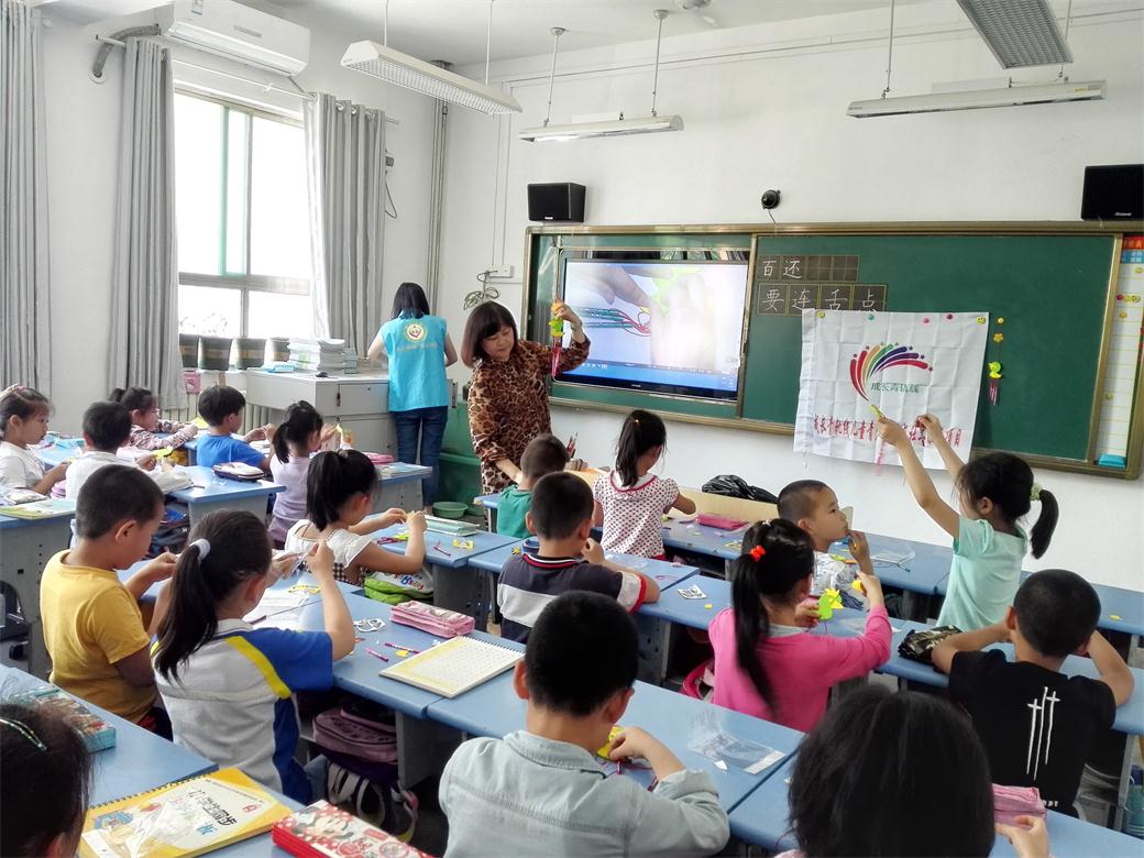 在活动开始之前,由社工姐姐给一年级的小朋友讲了《妈妈心,妈妈树》的绘本,小朋友们听得很认真,接下来在社工姐姐的带领下,开始为妈妈制作风铃,制作风铃的过程很复杂,但小朋友们做得很认真,一步一步的跟着社工姐姐的步骤,终于大家都制作出了一个个“小鸭子”造型的风铃。