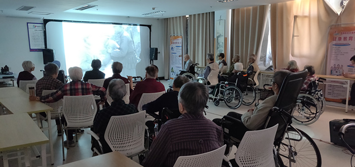 为了丰富住养老人的精神文化生活,让住养老人能走出房门,感受院舍化生活。5月22日,悦银龄养老社工项目组链接省广电资源,为住养老人在三楼老年大学活动室放映电影《上甘岭》,共有27位老人参加。