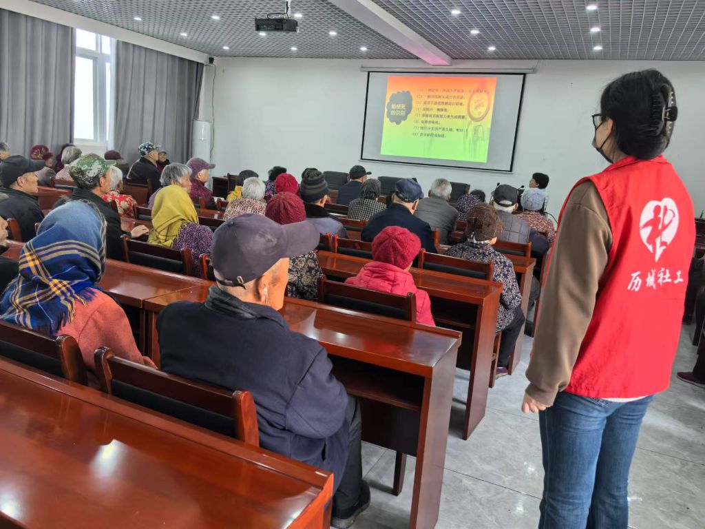 健康知识讲座环节,社工邀请了济南临港医院心脑血管专家王主任为老人们讲解常见老年疾病的预防和保健知识。社工积极运用活动策划与引导技巧,引导老人积极参与互动,分享自己的健康经验与困惑。医生针对老人的问题一一解答,为他们提供科学的健康建议和生活指导,提升老人的健康意识和自我保健能力。