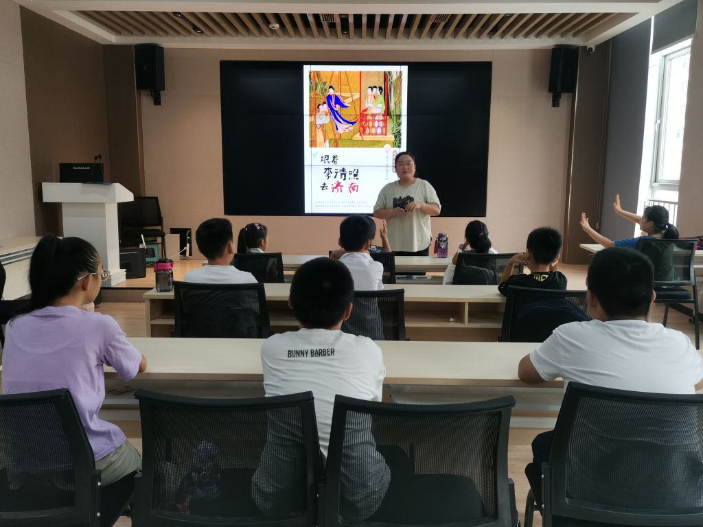 “羡煞济南山水好,几时真作卷中人”身为济南人对于济南美景、美食、美诗必然要有一定的了解。为加深成员们对济南文化的了解,社工通过PPT+讲解的方式,根据成员们现阶段的理解能力,针对性的进行学习;除去基本的美景分享,社工重点强调了济南泉城的灿烂文化,包括被称为“济南二安”的李清照和辛弃疾、历代诗人题咏济南的诗词、咏泉的诗句等等。