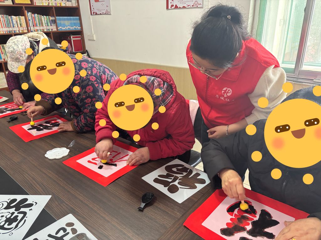 1月24日,小组活动迎来了第二场“体验非遗,拓印福字”。活动开始前,社工带领大家回顾了上节活动的精彩瞬间,并顺势引出了本节活动的主题。随后,社工详细介绍了非遗拓印的历史和文化内涵,特别是春节福字所蕴含的深厚寓意,让大家对这一传统技艺有了更深的理解和认识。在社工的现场示范下,大家纷纷动手尝试福字拓印的制作过程。从挑选合适的纸张、调配墨色,到精准地拓印出一个个寓意吉祥的福字,每一步都凝聚着大家的专注和努力。最终,当一张张精美的福字作品呈现在大家面前时,每个人都露出了满意的笑容。这些作品不仅展示了大家的才艺,更体现了他们对生活的热爱和对未来的美好祝愿。