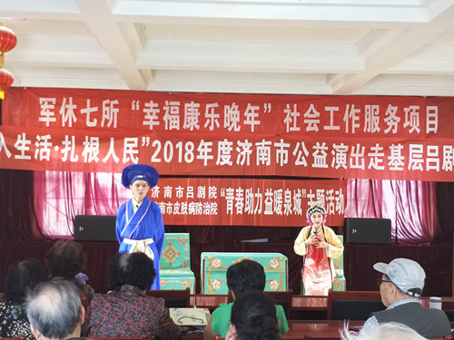 活动中,首先有爱心医院的医生为军休七所全体老人,免费义诊和心脏复苏知识的宣讲,以及针对老人健康方面预防和健康教育处方的讲解等。接下来,有济南市吕剧团演员们为现场的老人献上精彩戏剧表演。在活动的现场军休七所的老人们掌声不断,满脸的喜悦和谐的气氛似乎把老人带入另一个场域。