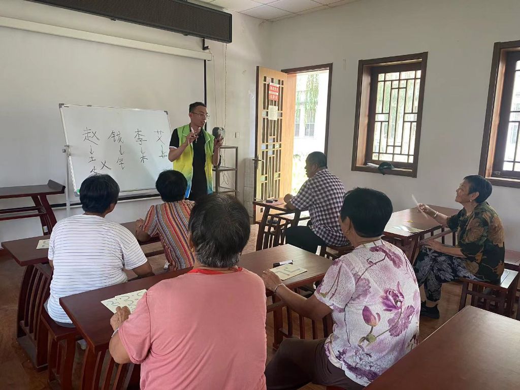 通过前期走访调研,社工了解到社区部分老年人目前仍不会写字,但对练习写自己名字存在需要。为了让社区老年人能够学会写名字,并丰富其文娱生活,7月9日,孙耿街道社工站组织开展“乐龄学堂”老年学习班第三课。